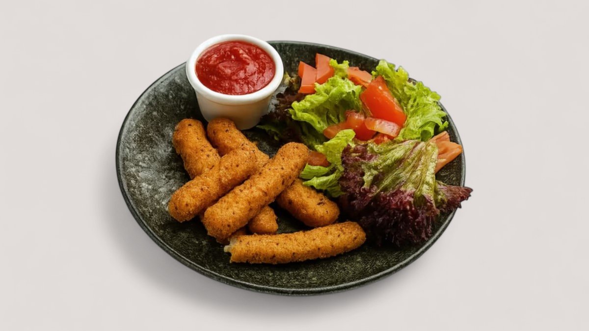 schmelzender Mozzarella in knuspriger Panade, serviert mit Salsa Roja