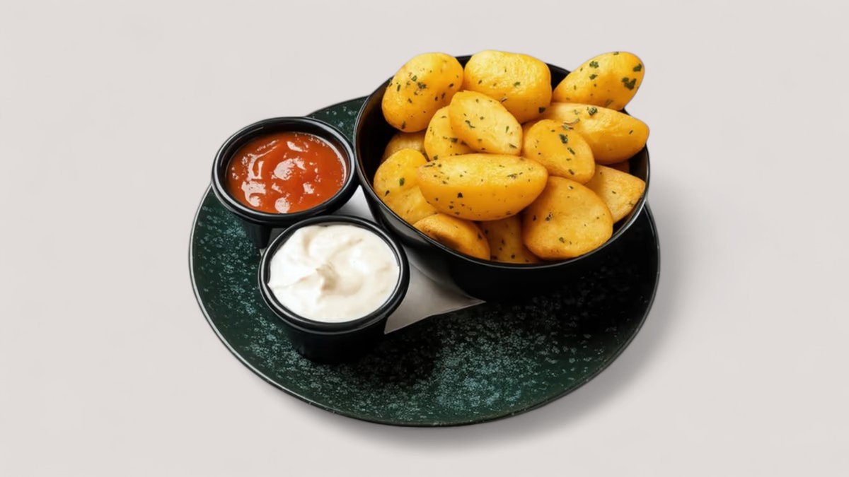 würzige Kartoffelecken mit Salsa Roja und Sour Cream