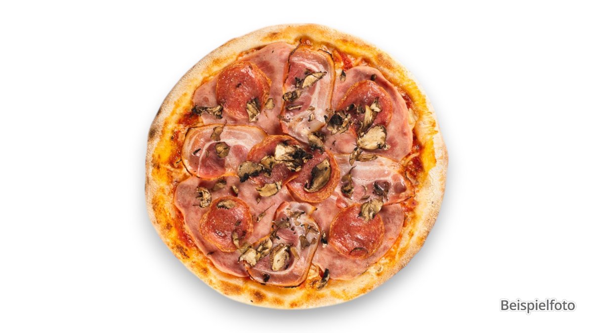 mit Salami vom Rind und Schwein, Schweineschinken und Champignons