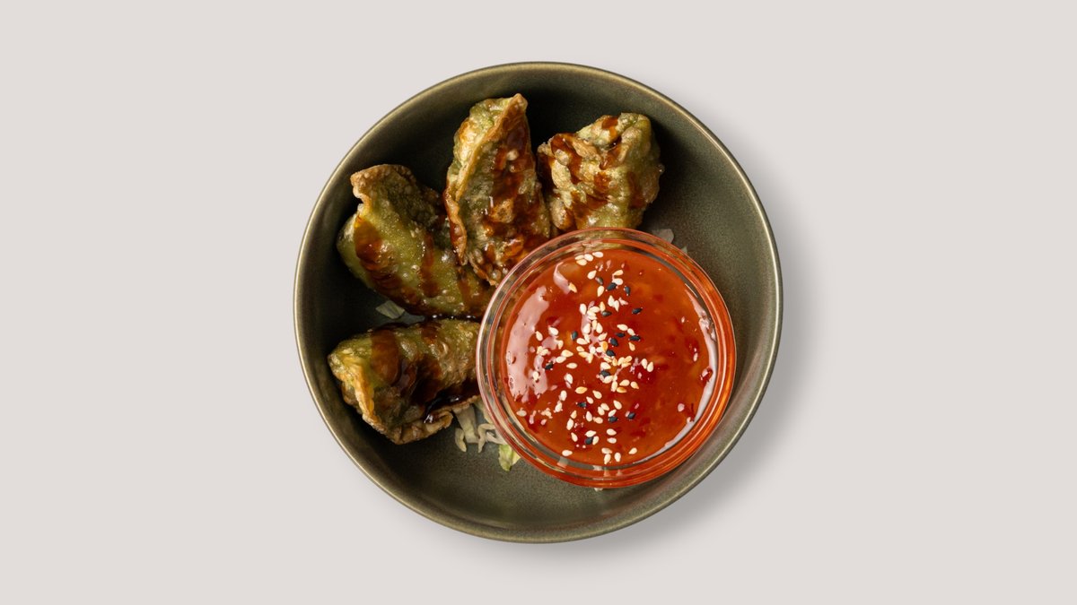 frittierte Teigtaschen mit GemĂĽsefĂĽllung und Sweet Chili Sauce