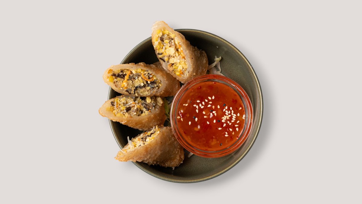 6 StĂĽck vegane FrĂĽhlingsrollen mit Sweet Chili Sauce