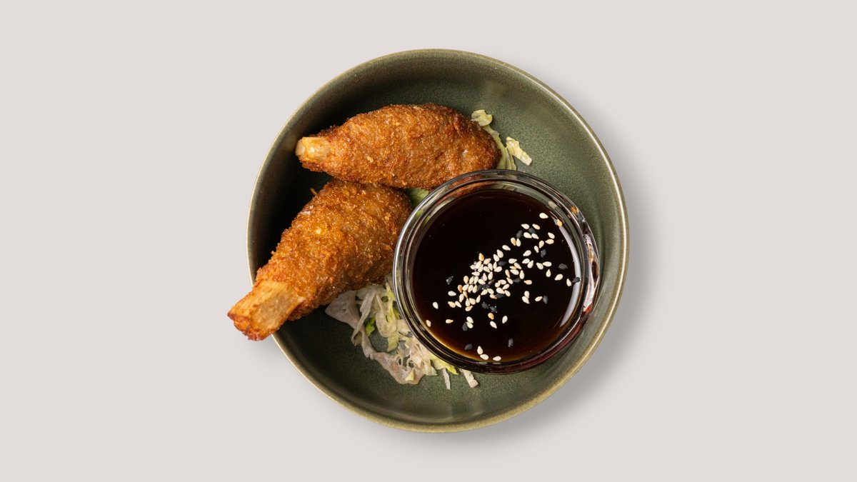 2 StĂĽck gebackene vegane Garnelen mit Erdbeer-Chili-Dip