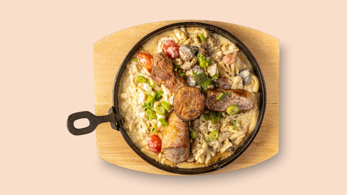 Schweinemedaillons mit Spätzle, Champignons und Kirschtomaten in Sahnesoße