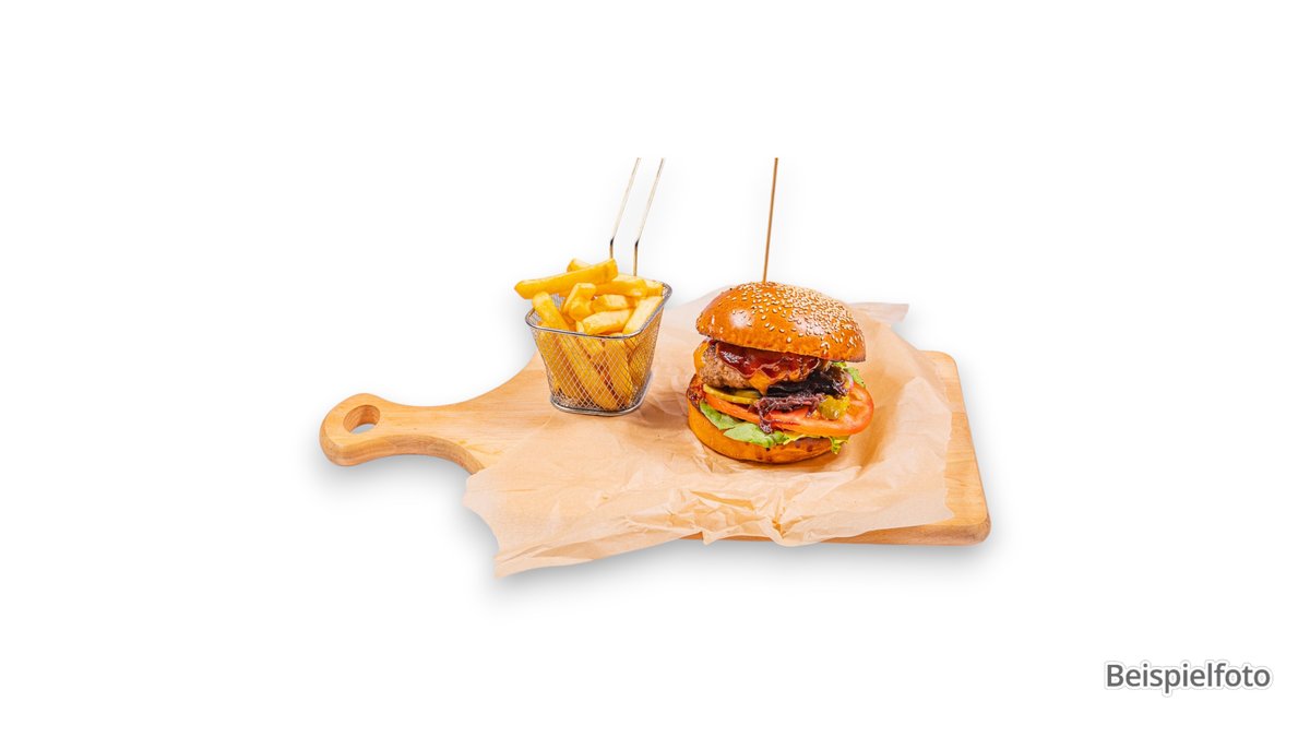 1x Boom BBQ Burger 1x Beilage deiner Wahl 1x Dip deiner Wahl 1x alkoholfreies Getränk 0,33 I deiner Wahl