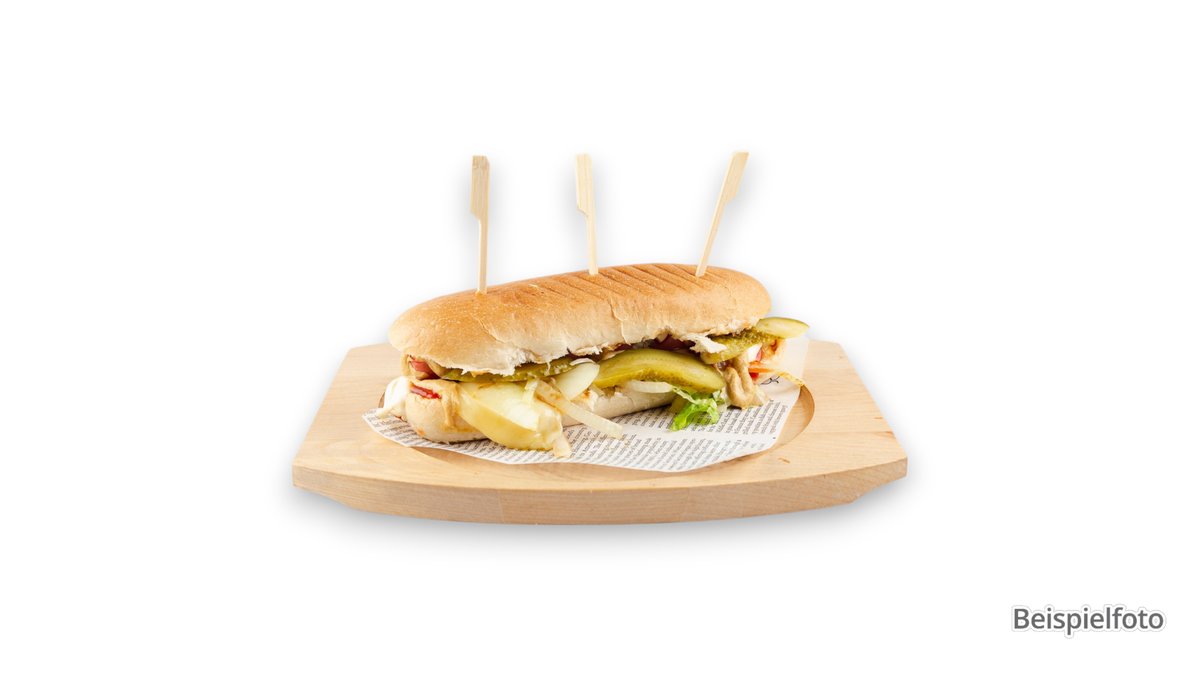 mit Veggiepatty, Mozarella, Zwiebeln, sauren Gurken, Spezialsoße, Ketchup und Senf