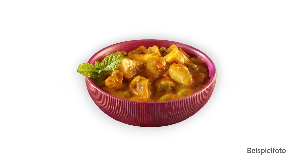 mittelscharf Kartoffeln mit grünen Erbsen und würziger Currysoße