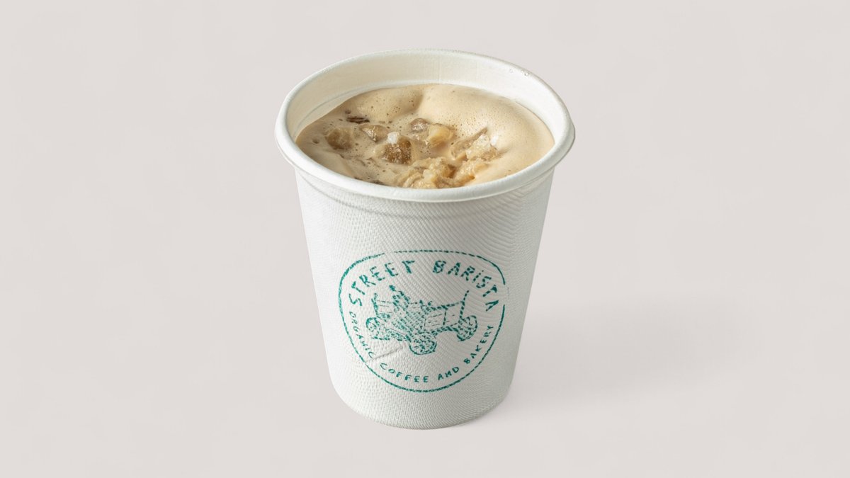 Kaltes Getränk mit Masala Chai und Milch. Koffeinhaltig, enthält Milch.