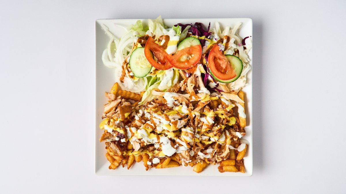 alle Gerichte werden mit Eisbergsalat, Rotkraut, Weißkraut, Zwiebeln, Gurken, Tomaten, einer Fleischsorte und Soßen deiner Wahl zubereitet