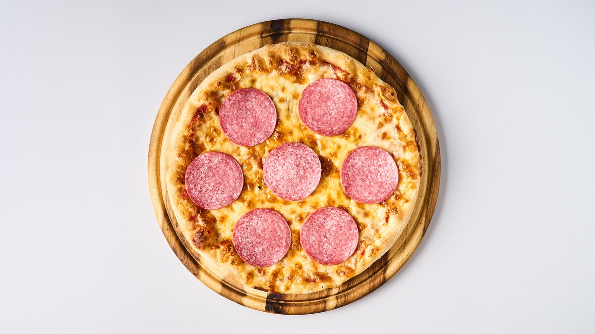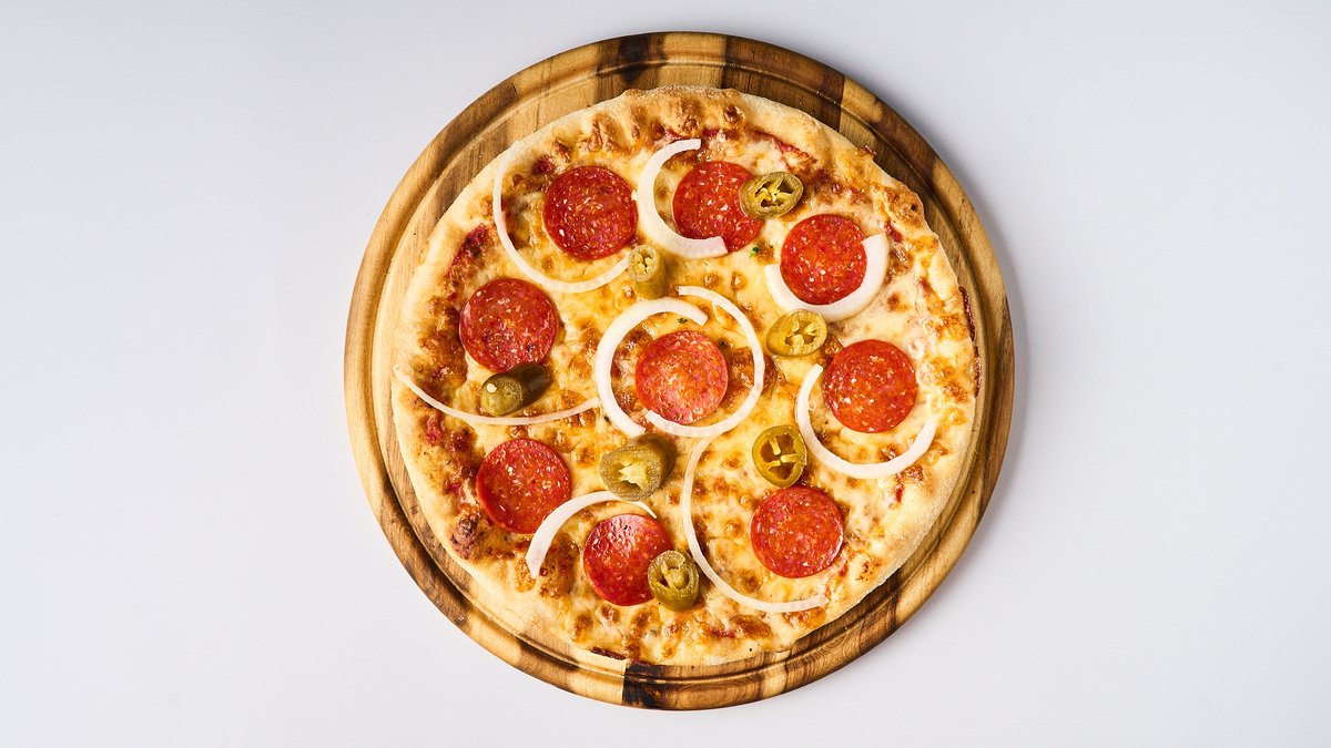 mit Chili-Salami vom Schwein, Zwiebeln und Jalapeño-Mix