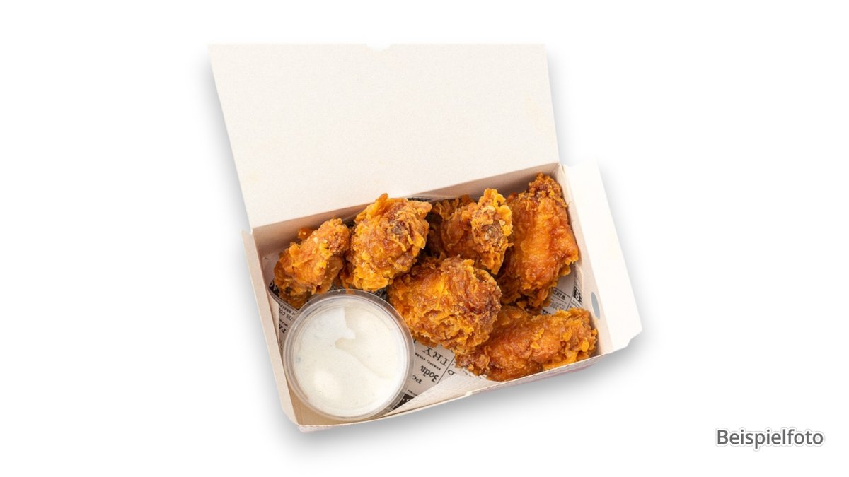 10 Stück, knusprig frittiert mit einem Dip deiner Wahl