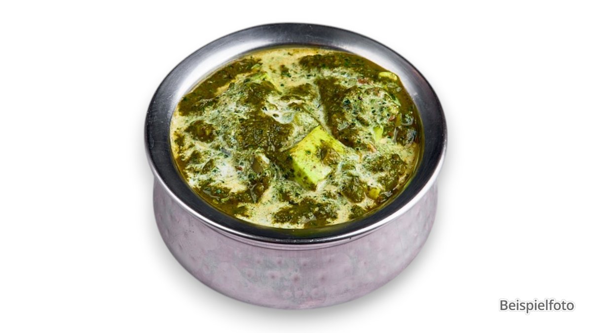 Blattspinat mit hausgemachtem afghanischem Käse in Curry