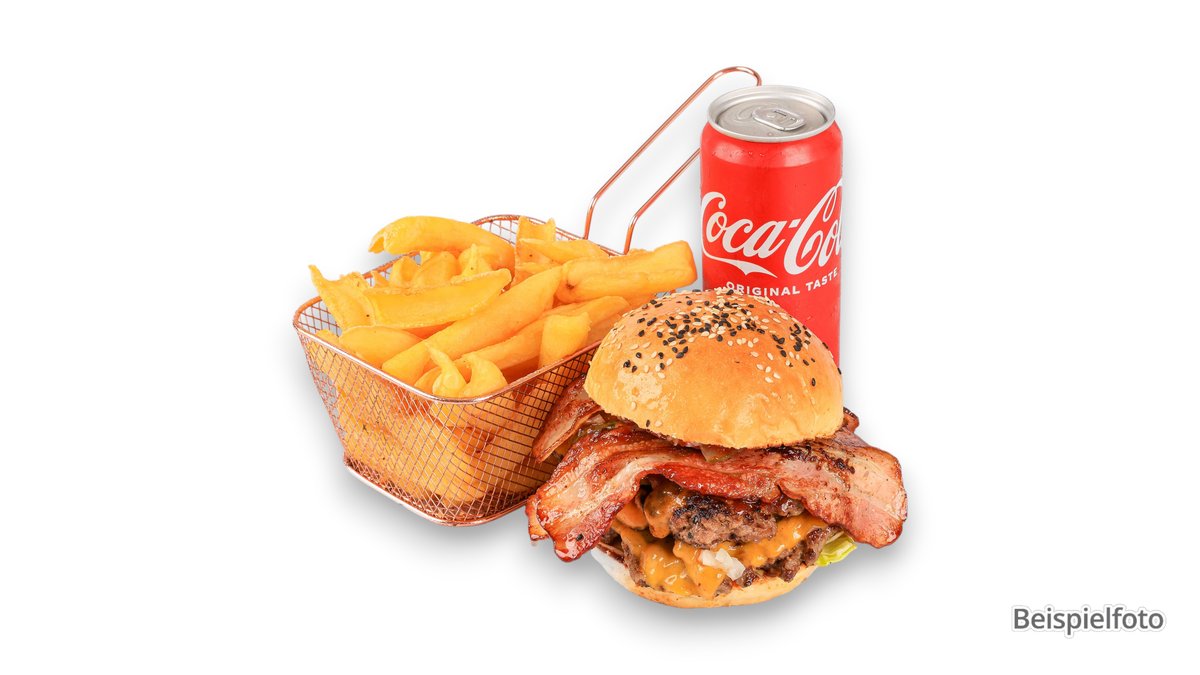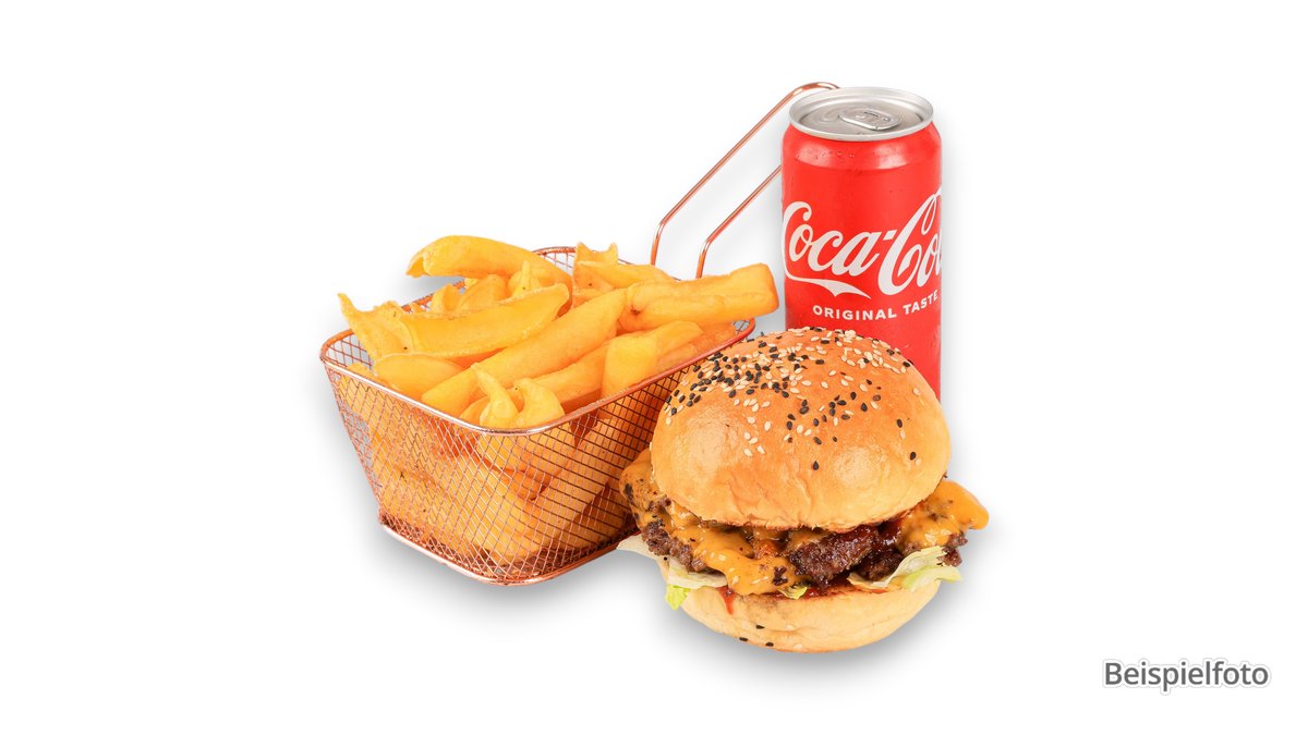 alle Menüs werden mit Pommes frites und einem Getränk 0,33 l serviert