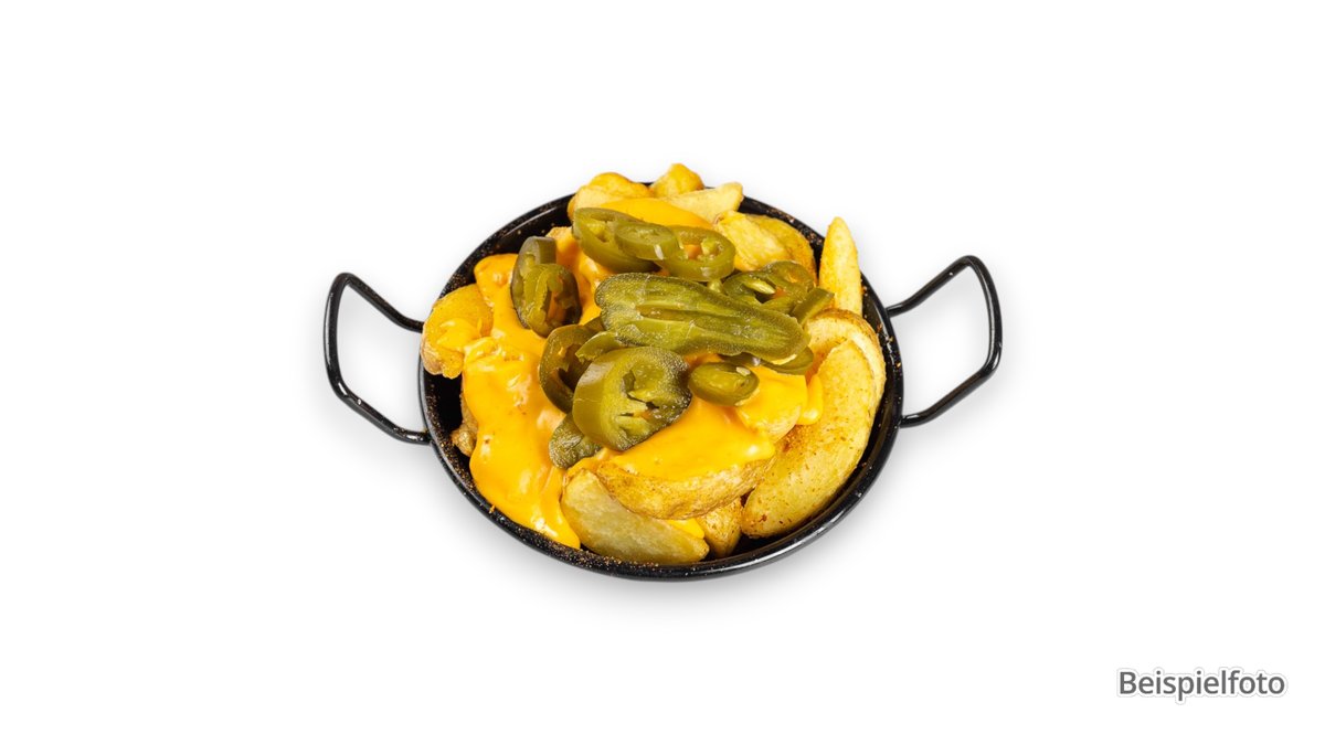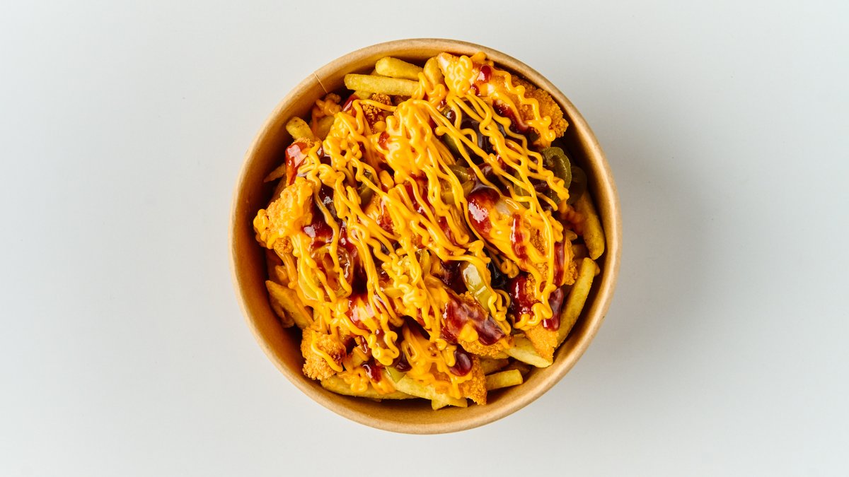 mit Pommes frites, Weichkäse, einer Zutat und einer Soße deiner Wahl