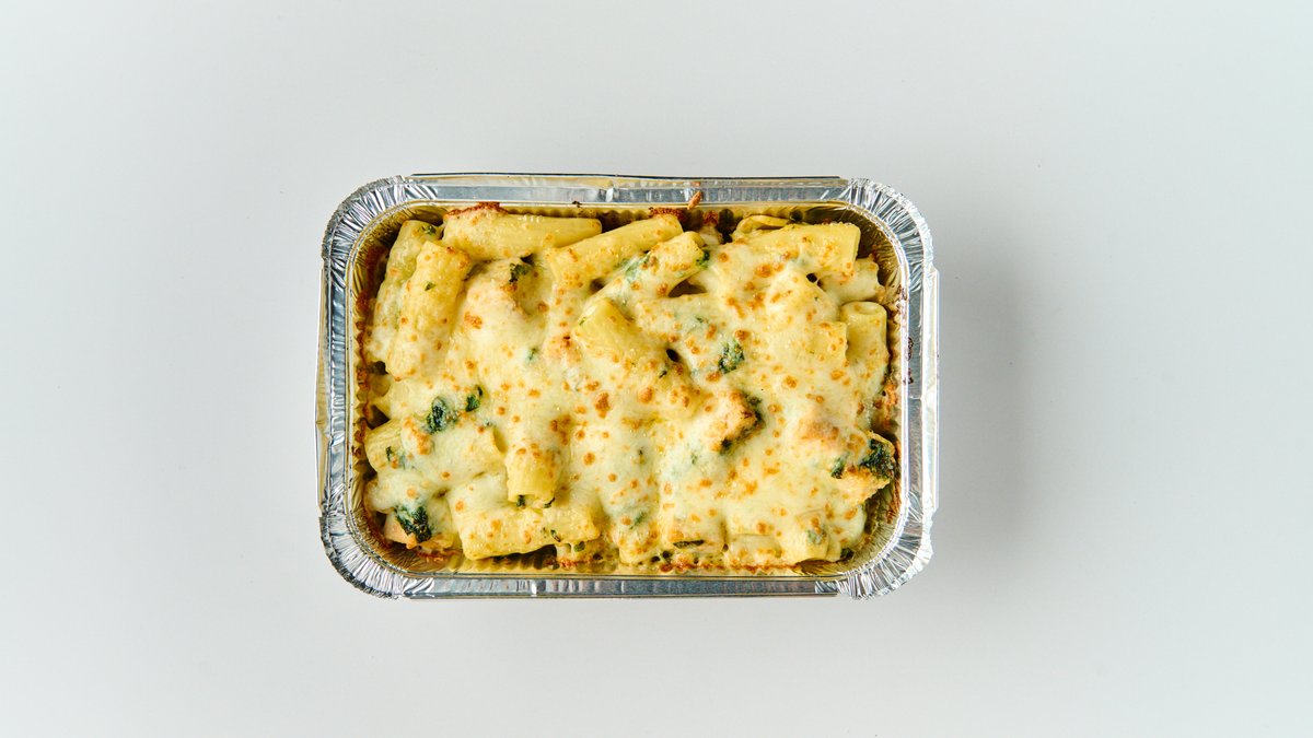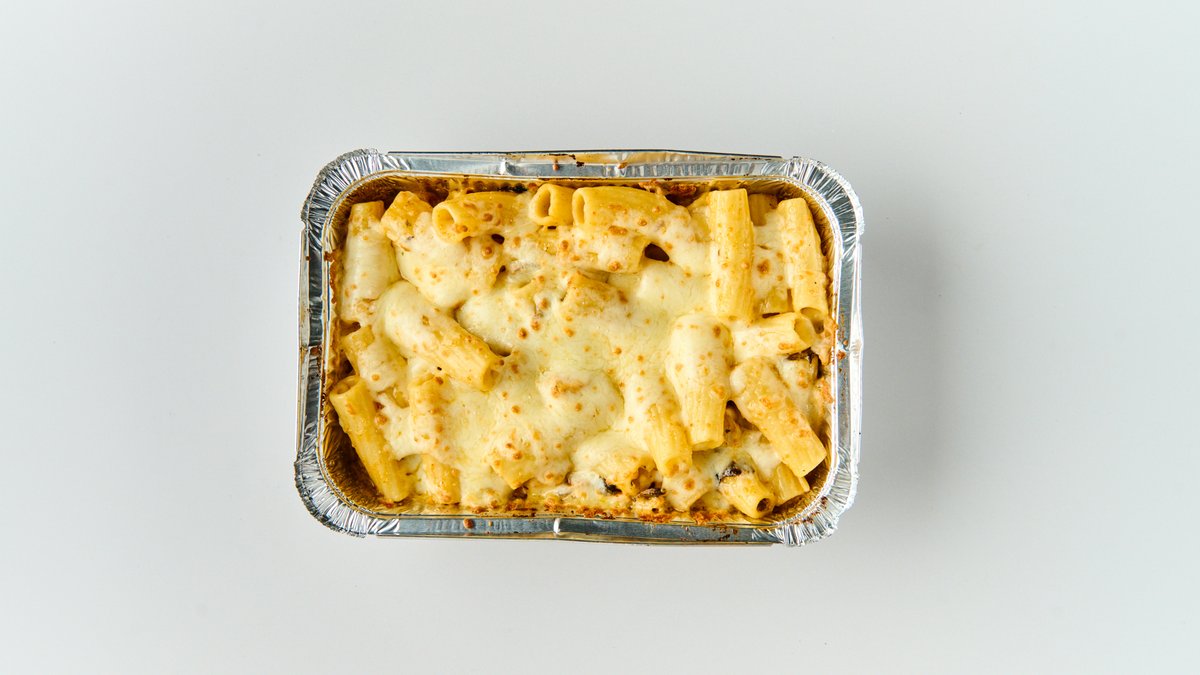 Rigatoni mit Dönerfleisch und Tomatensoße und mit Käse überbacken