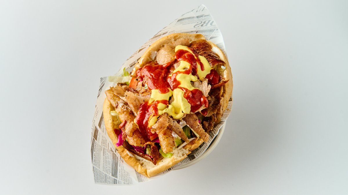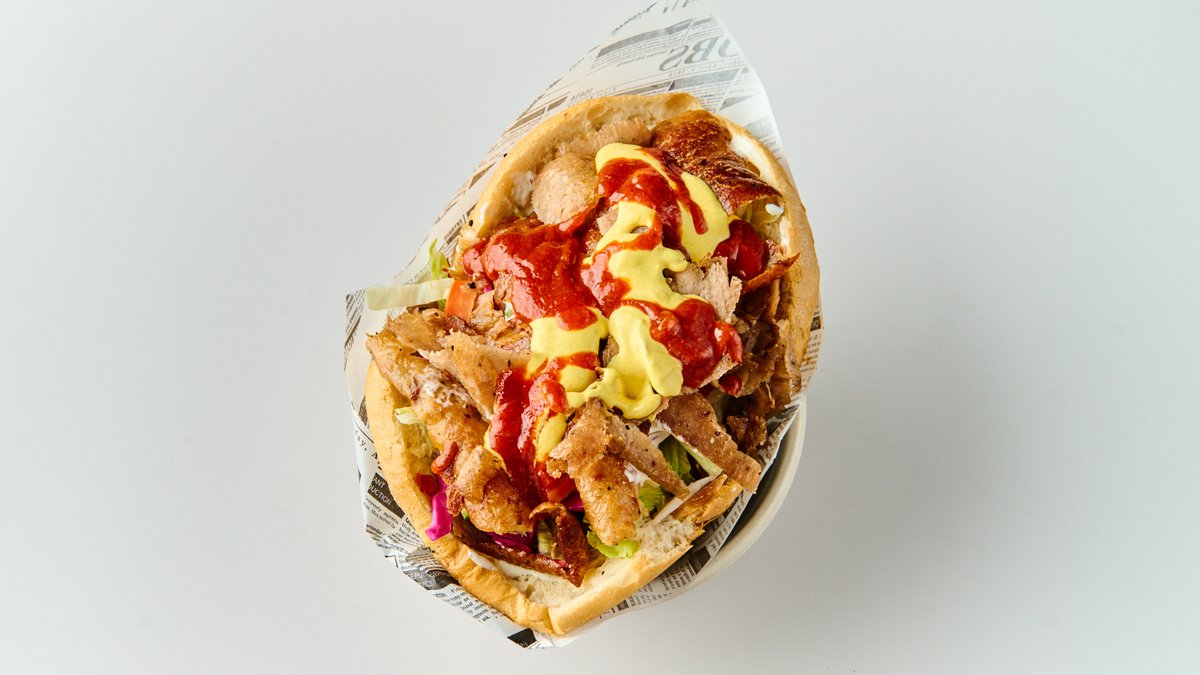 im Fladenbrot mit einer Zutat und einer Soße deiner Wahl