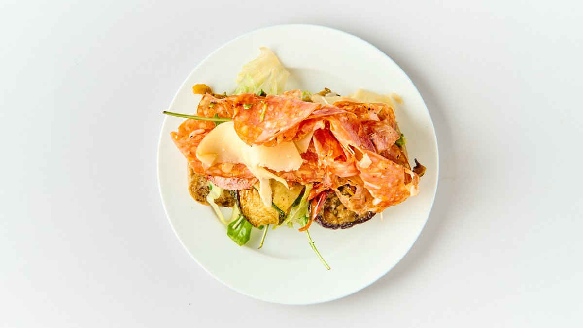 mit Gemüse, scharfer Salami, Provolone, Salat und Tomaten
