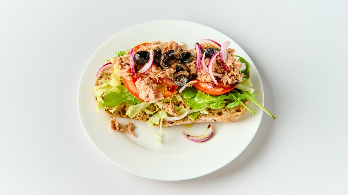 mit Thunfisch, Salat, Tomaten und Zwiebeln