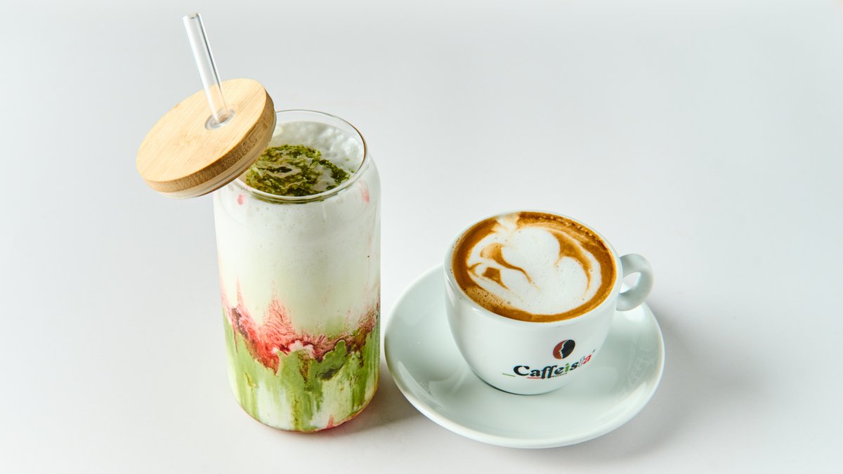 Fein gemahlener Grüntee (Matcha) mit aufgeschäumter Milch.