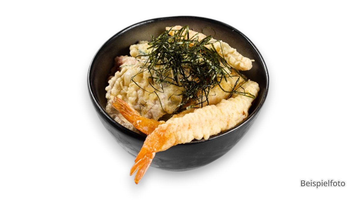 Tempura-Reis mit frittierten Garnelen und saisonalem Gemüse mit einer speziellen Süẞ-Salzigen Soße