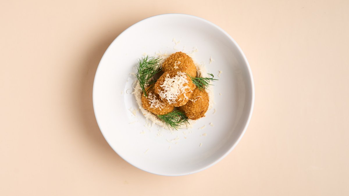 Pilz-Reisbällchen mit Trüffle Aioli, Dill