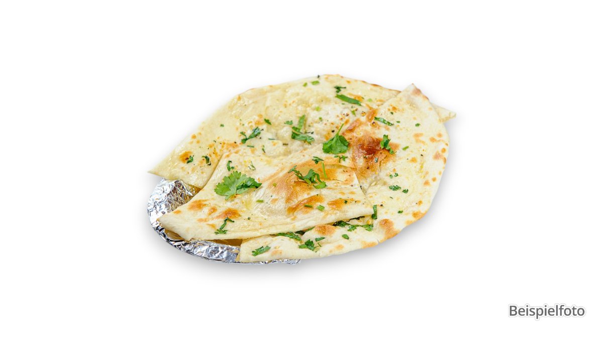frisches Fladenbrot, dazu zwei cremige Joghurtdips:-Mast-o Sir mit wildem Knoblauch und Mast-o Khiar mit Gurke, Rosinen und Kräutern