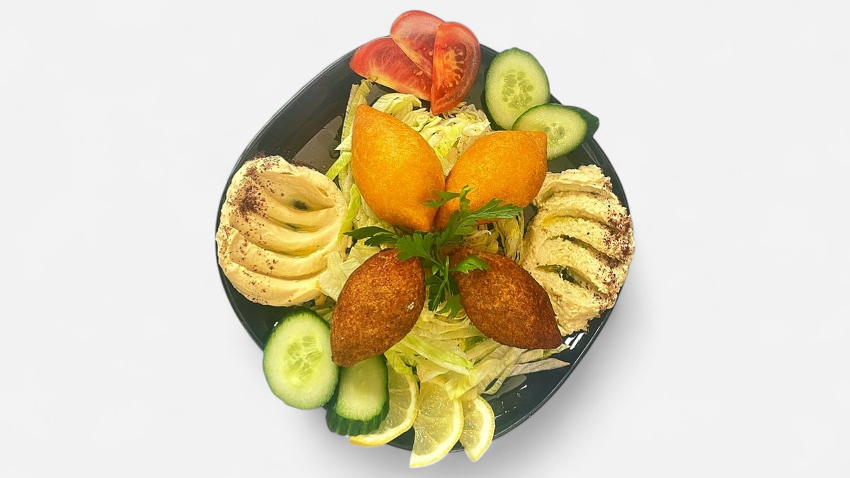 frittierte Kichererbsenbällchen mit Sesamsoße und Salat