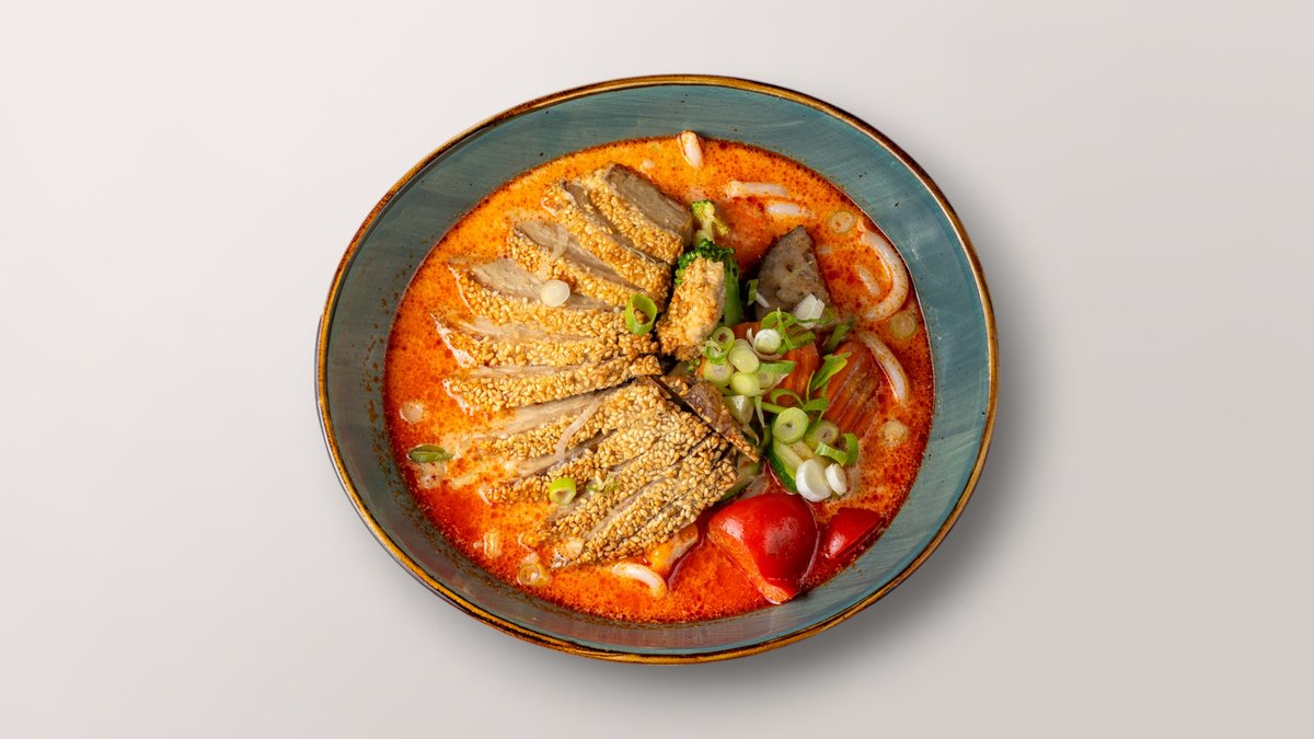 mit kräftiger Hähnchenbouillon, Pilzen, Tomaten, Schalotten, Kokosmilch und einer Zutat deiner Wahl