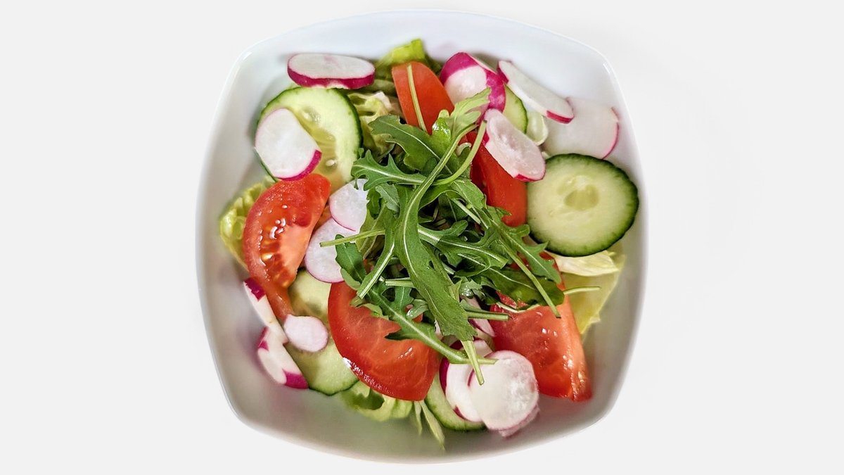 alle Gerichte werden mit Dressing nach Wahl und mit Eisbergsalat, Tomate, Gurken und Radieschen zubereitet