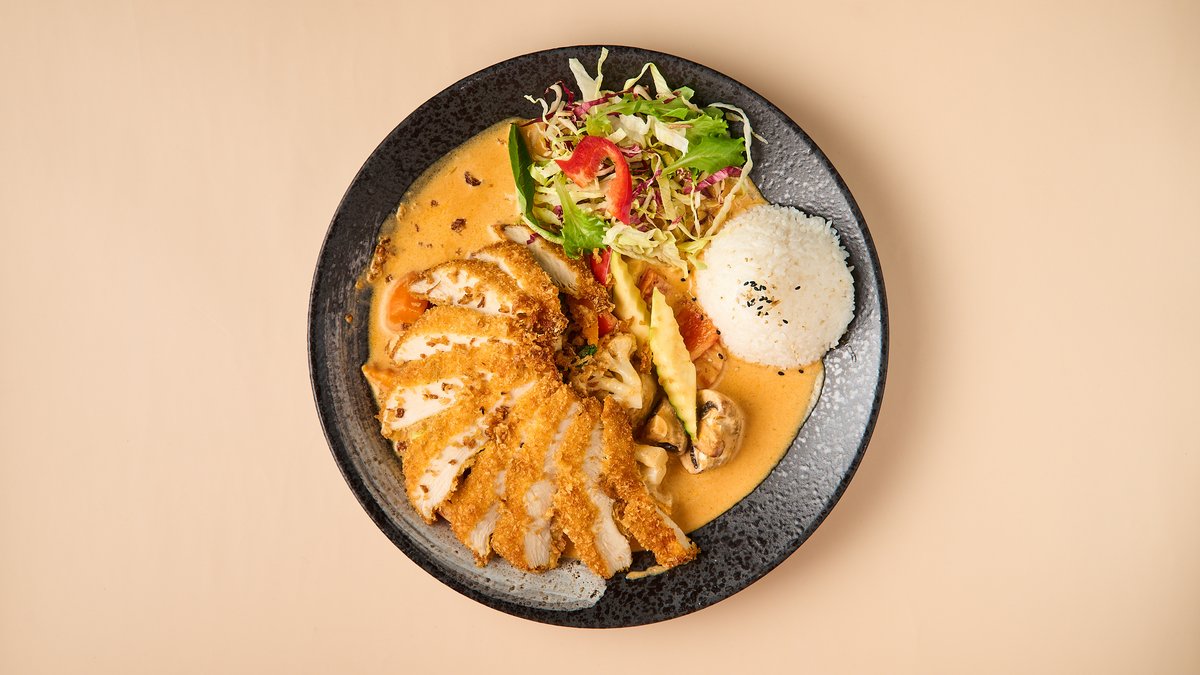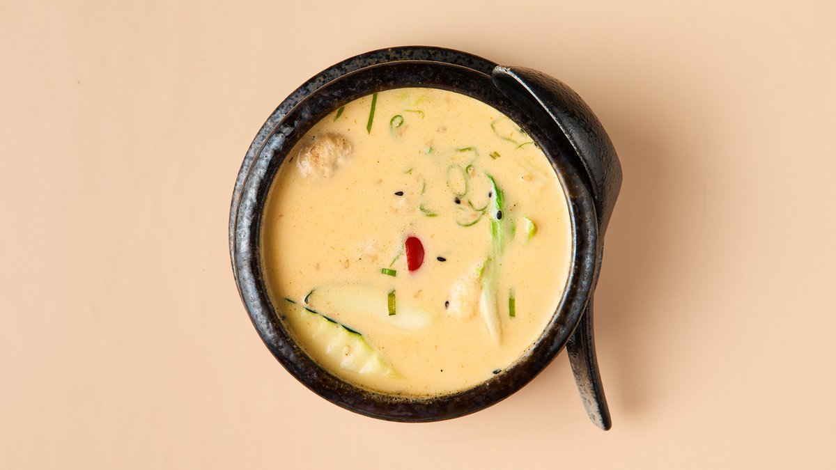mit Kokoscreme, Hühnerbrühe und Gemüse