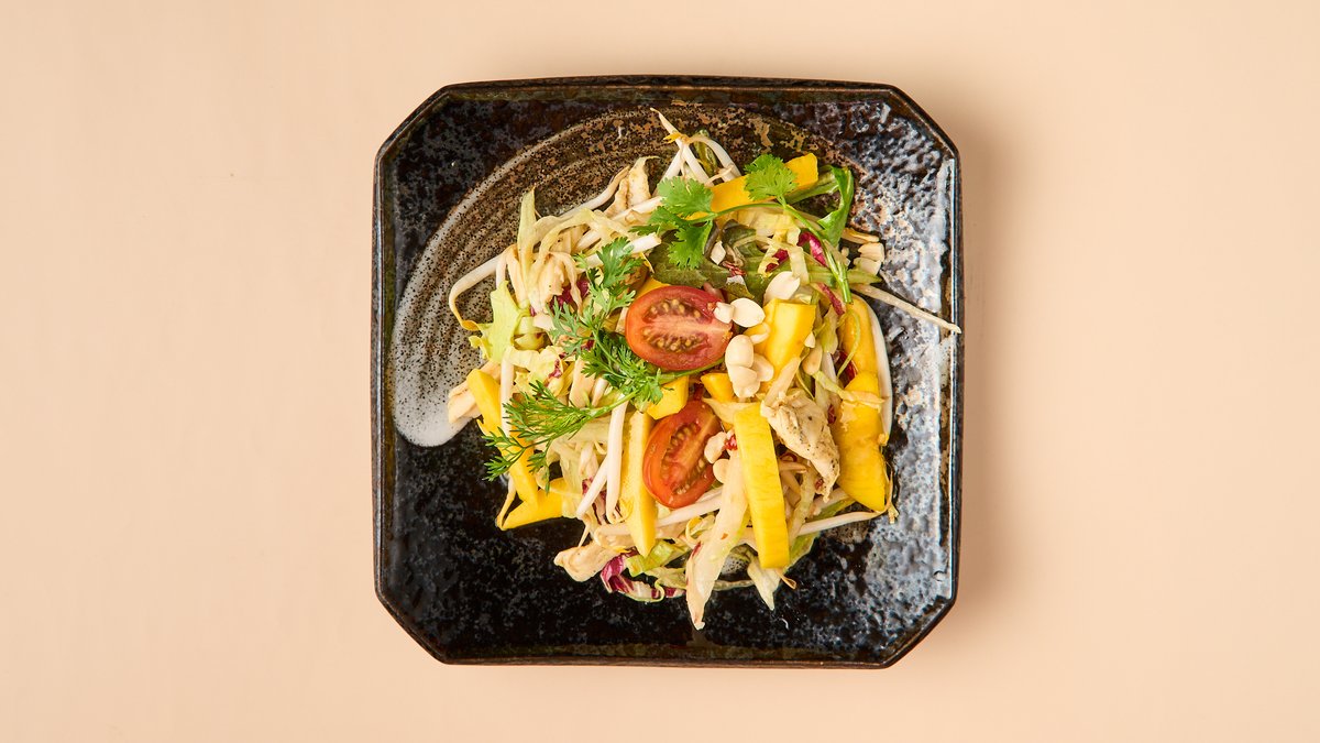 Gedämpfter Hefekloß Gemüsefüllung mit Glasnudeln und Soja-Limetten-Dressing