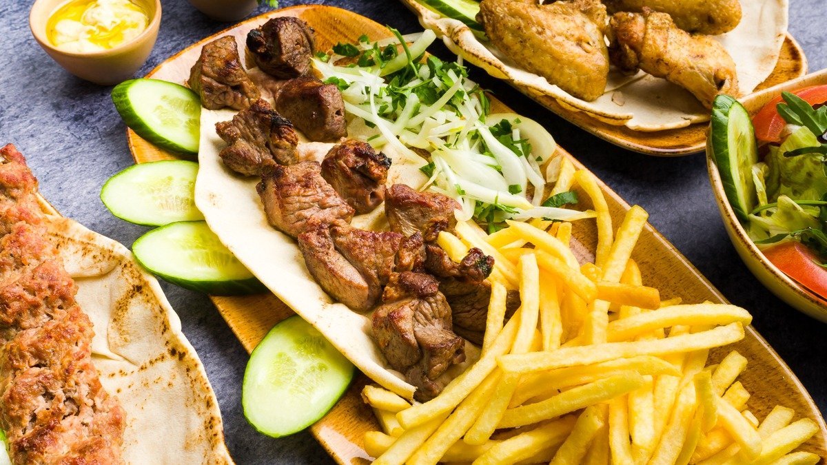 Hähnchenspieß, Lammspieß, Lammkotelett und Kebab