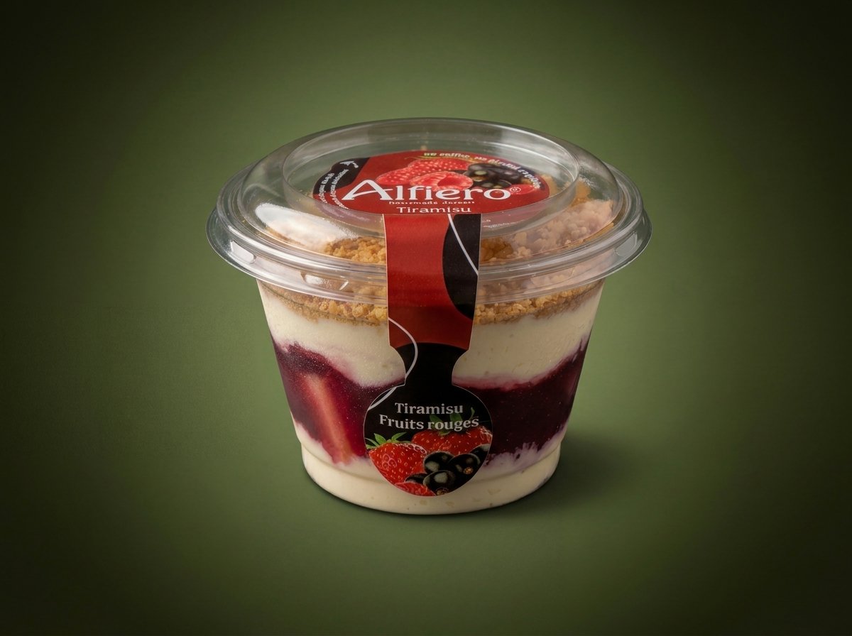 Erliegen Sie der Frische unseres fruchtigen Tiramisu, bei dem die Süße von Mascarpone auf die Säure von Erdbeeren, Himbeeren und schwarzen Johannisbeeren trifft, zwischen Schichten von Savoiardi-Keksen. Ein fruchtiger und erfrischender Genuss.