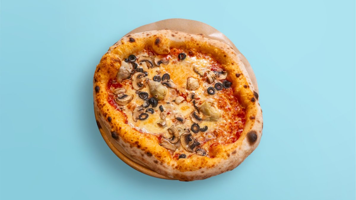mit Tomatensoße, Käse, Truthahnschinken, Champignons, Artischocken und Oliven