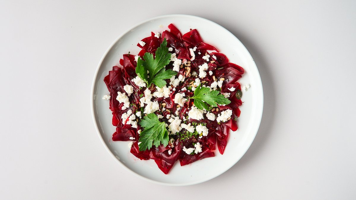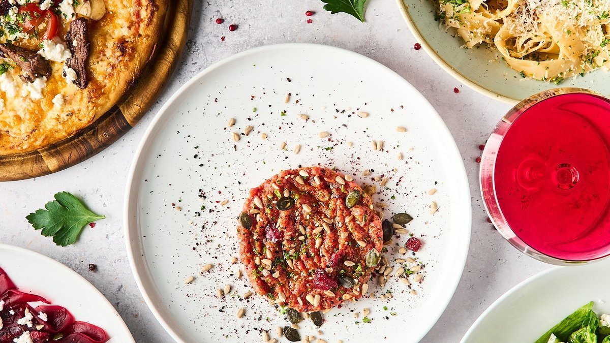 mit Knoblauchbrot und hausgemachter Vinaigrette