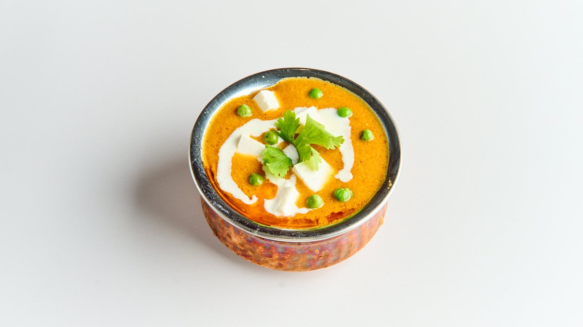mit Erbsen und Paneer in königlicher Kaschunüsse-Currysoße