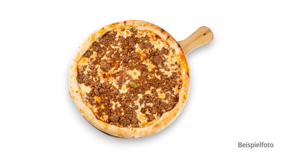 mit Speck vom Schwein, Salami vom Schwein, Hackfleisch von Rind und Schwein, Paprika und Peperoni