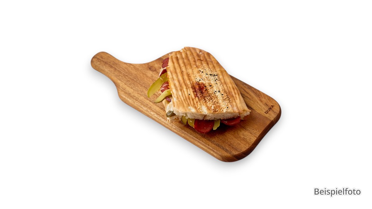 cremig und würzig gefüllt mit Hirtenkäse, Formfleisch-Schinken vom Schwein, aus Fleischteilen zusammengefügt, Gouda und Joghurt-Dressing