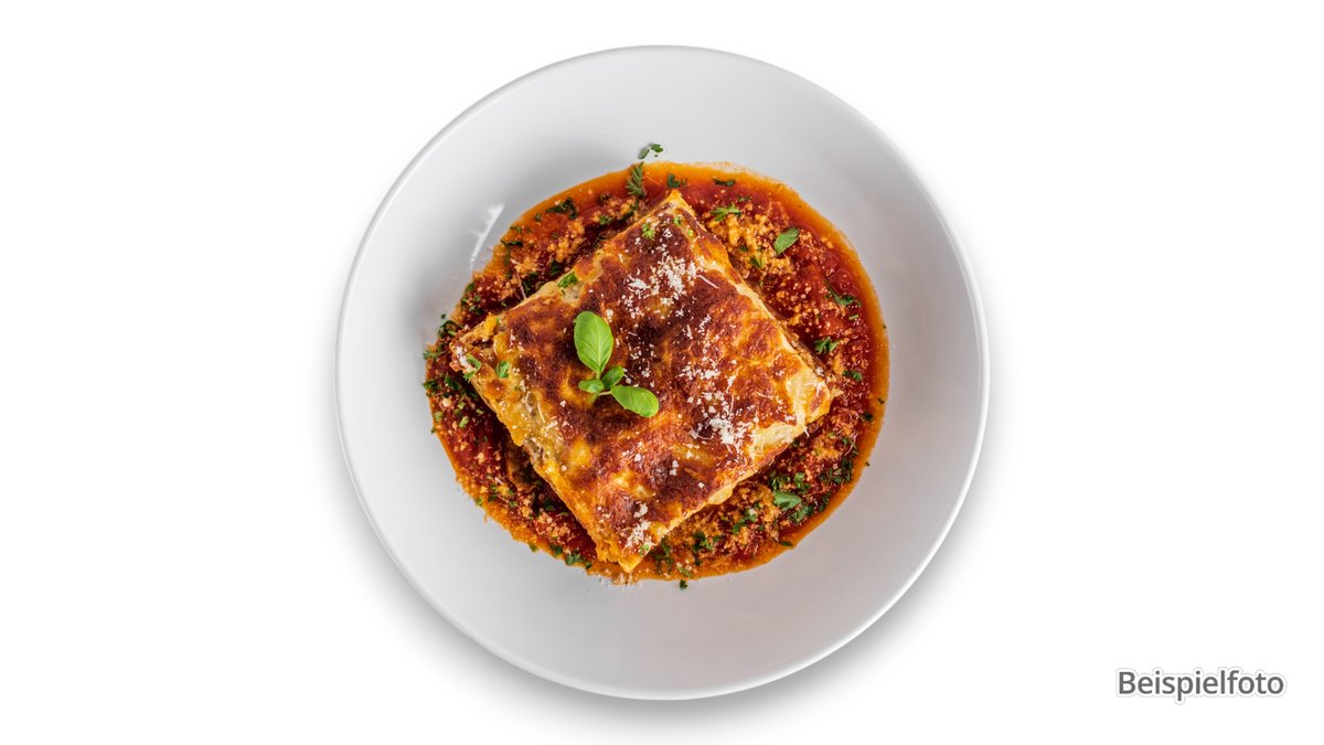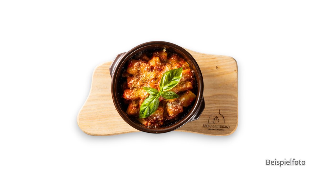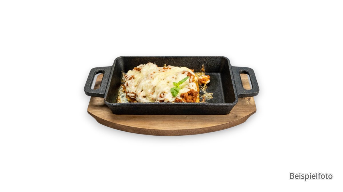 mit Hackfleischsoße von Rind und Schwein, Knoblauch, Zwiebeln und Käse
