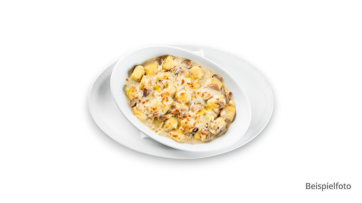 deftig und cremig gefüllt mit Hähnchenbrust, Champignons, Zwiebeln und Joghurt-Dressing