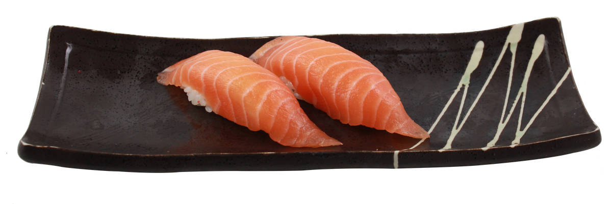 12 Stück 4x Lachs Maki 4x Thunfisch Maki 4x flambiertes Lachs Nigiri mit Sesam und Teriyaki-Soße