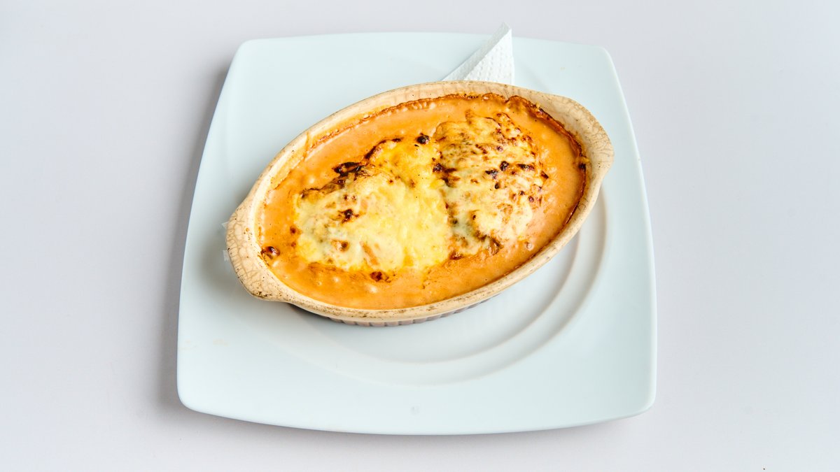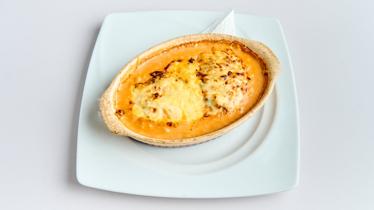 aus Schweinefleisch, mit Pommes frites, Käse und Metaxasoße überbacken, dazu Reis Enthält Alkohol, für Kinder und schwangere Frauen nicht geeignet.