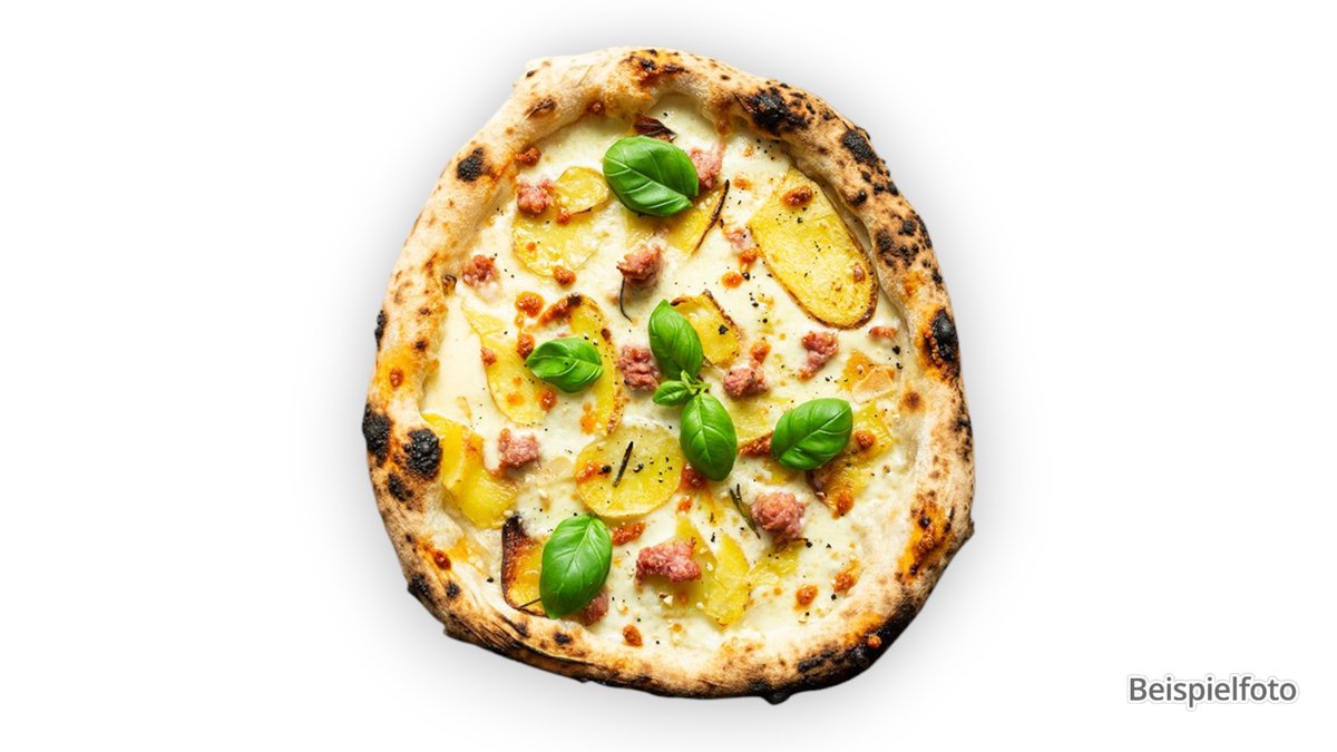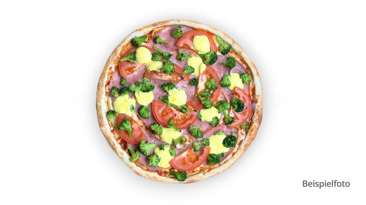 alle Pizzen sind ca. Ø 30 cm groß und werden mit Tomatensoße, Käse und Oregano zubereitet („2. Pizza Piadina Rossa” wird ohne Käse, „6. Pizza Oh My Truffle”, „8. Pizza Italian Star”, „9. Pizza Miss Pumpkin”, „11. Pizza Green Land”, „15. Pizza Gambasola”, „19. Pizza Asparagi”, „24. Pizza Mister Alffredo”, „25. Pizza al Salmon” und „26. Pizza Last Dragon” werden ohne Tomatensoße „1. Pizzabrot” wird ohne Tomatensoße und Käse zubereitet)