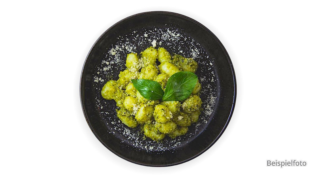 mit Brokkoli, Champignons, Gorgonzola, Sahnesoße, Grana Padano und Knoblauchöl