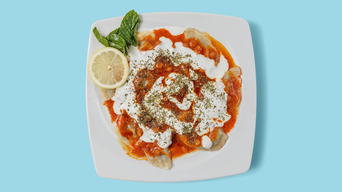 im Wasser gedünstete Teigtaschen mit einer Füllung aus Rinderhackfleisch und Zwiebeln