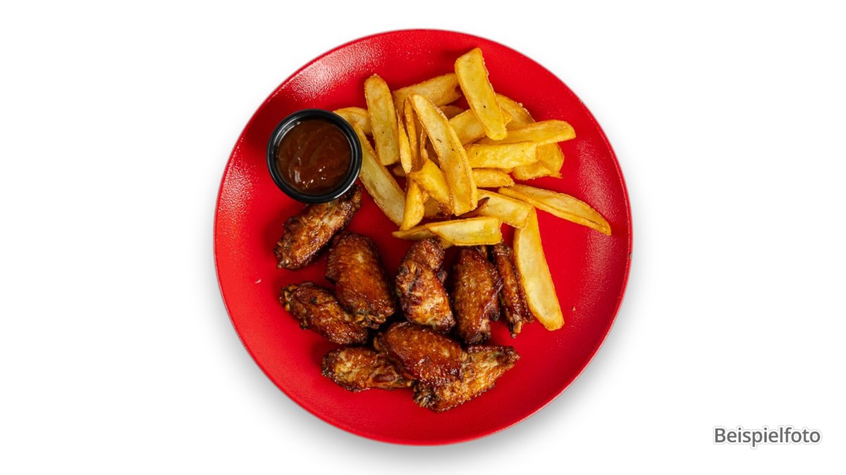 5 Stück marinierte Chicken Wings mit Wedges und Barbecuesoße