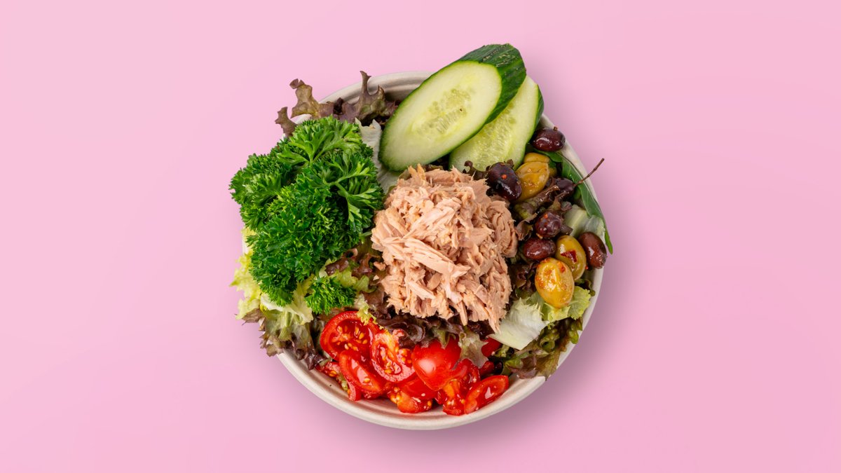 frischer Salat mit Thunfisch, Oliven und Zwiebeln