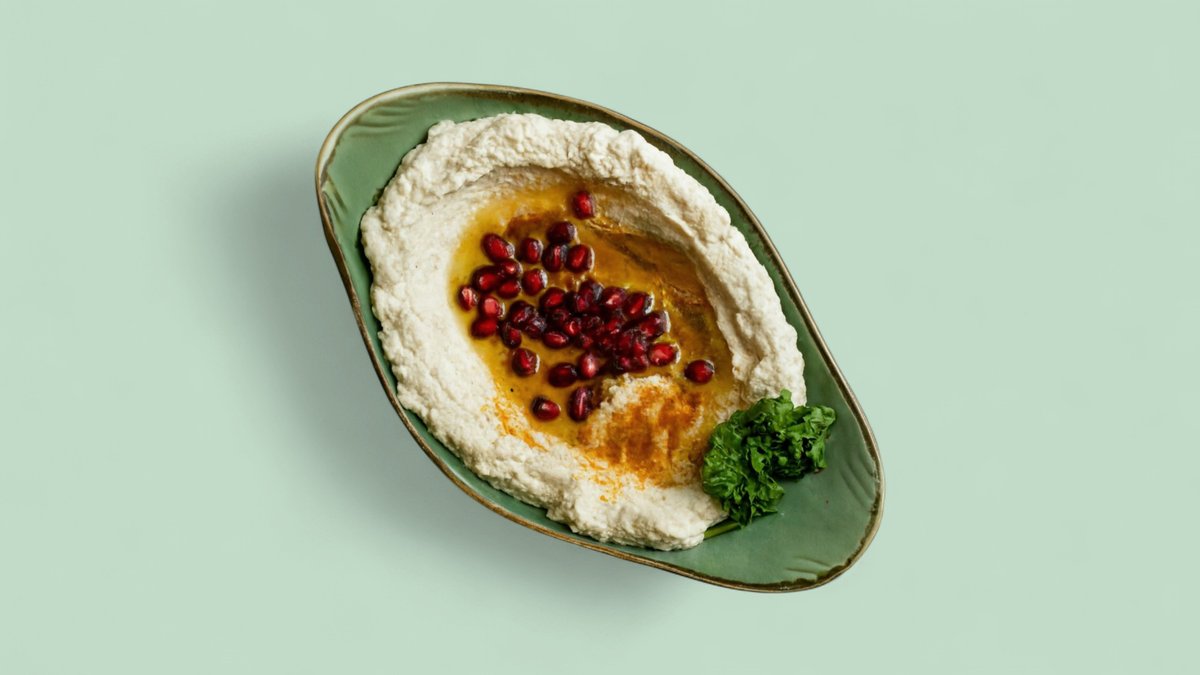 Kichererbsen-Mouse mit Sesampaste, Zitronensaft, Kreuzkümmel und Olivenöl