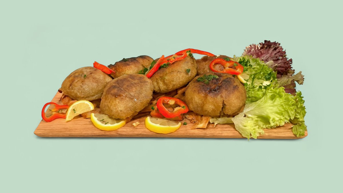 3 Stück frittierte Teigröllchen gefüllt mit 3 Käse Sorten, Petersilien und Schwarzkümmel