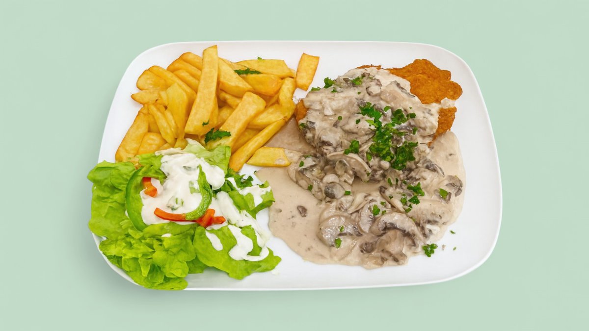 31. Hähnchenschnitzel mit Champignonsoße