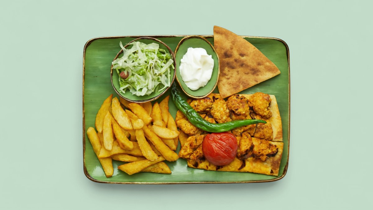 1x Kebab mit 1x Lammspieß, 1x Hähnchenspieß, Pommes frites und einer Fleischsorte deiner Wahl